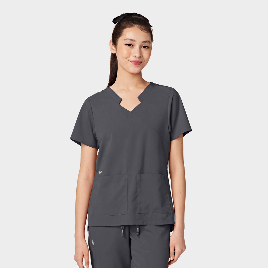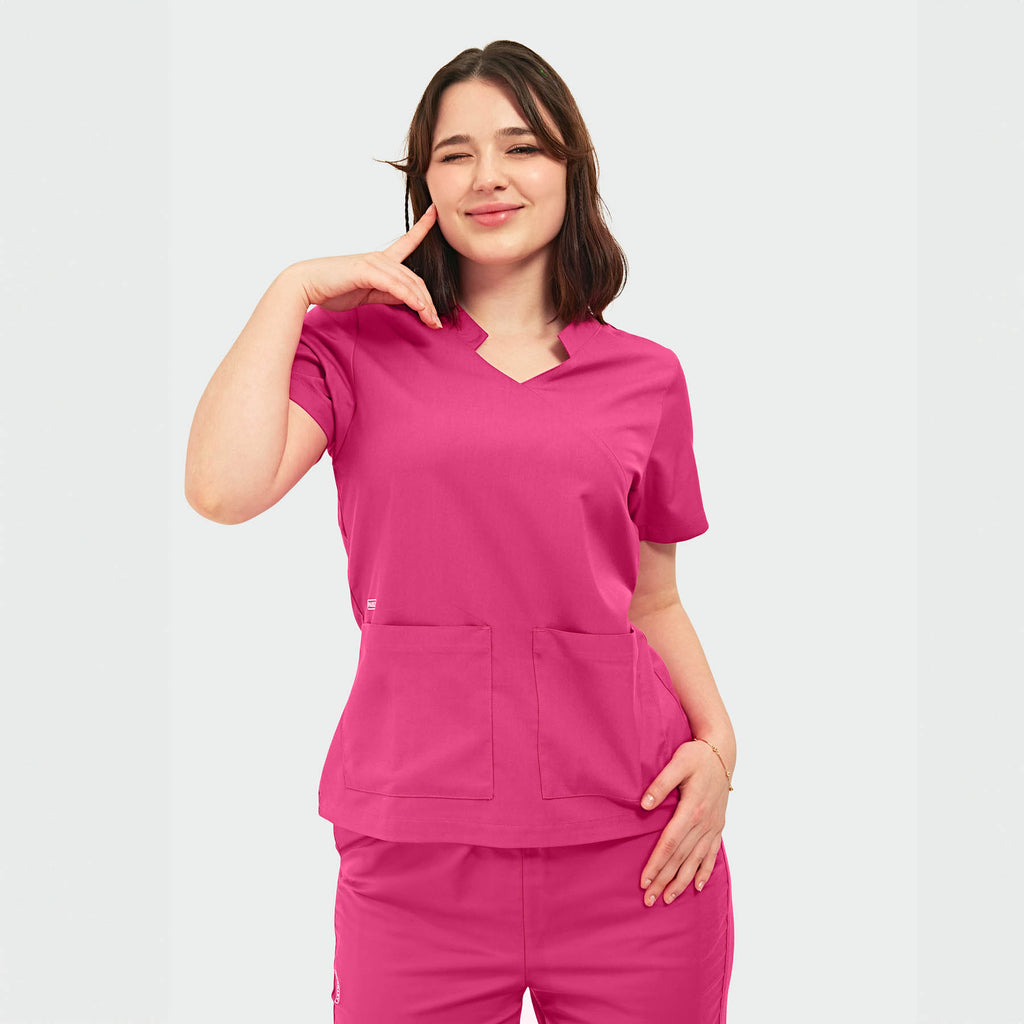 TESS Women's ABC Two-Pocket Mandarin Scrub Top